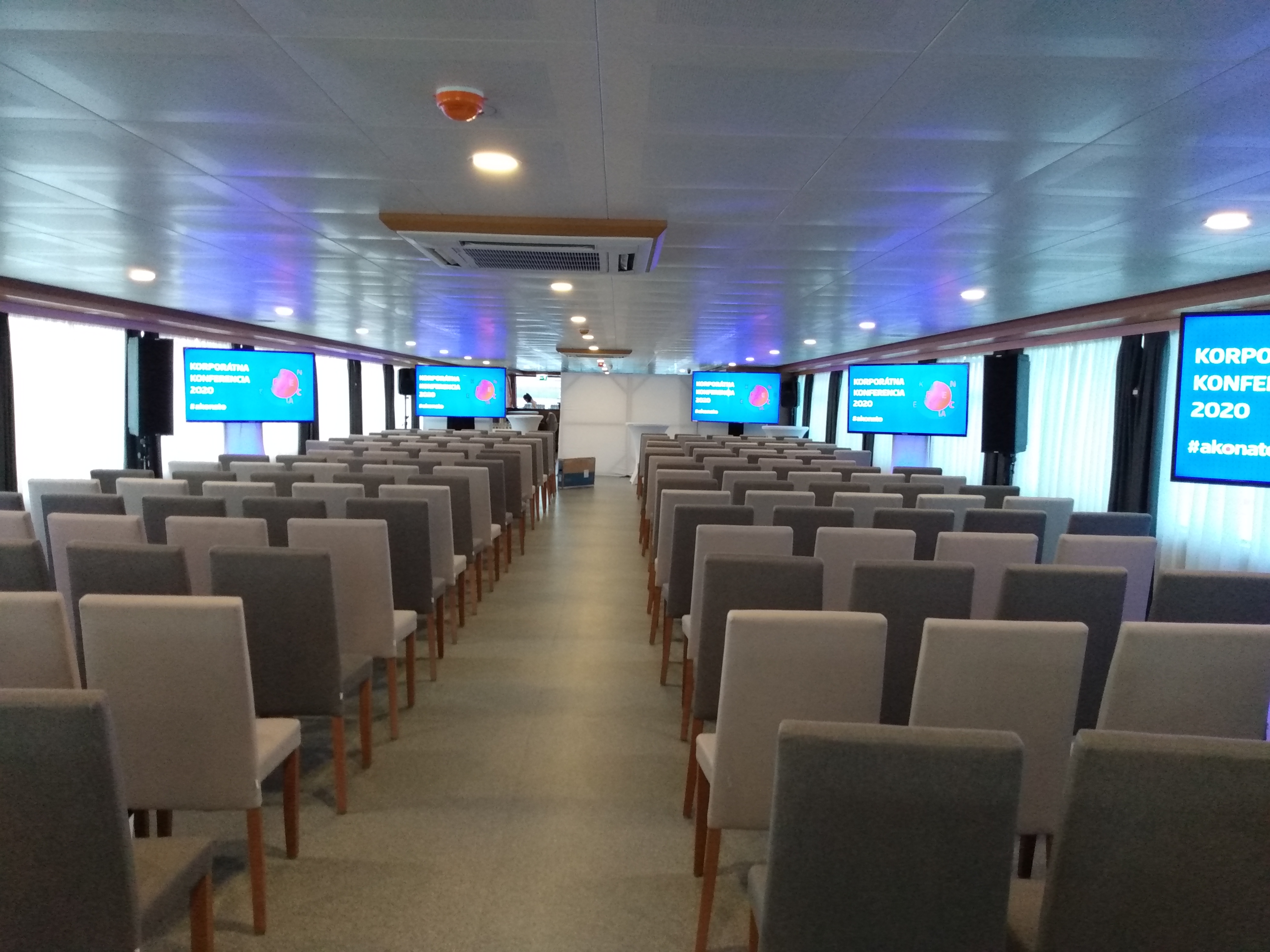 Conference on a boat has its own spark and a lot of practical advantages. You are close to the city centre, but also far enough from the noise and rush. During the break you and your participants can enjoy the views on Bratislava from our deck. You can have a discussion in peace while listening to the waves. You, as an organizer, can be sure that you will have not only quality conference, but also nice "outside of work" experience.