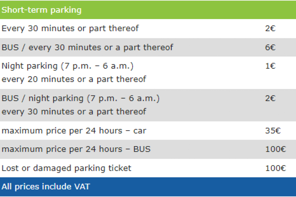 Capacity is 64 space for cars and 10 spaces for buses. It is fully automatic and you can pay with cash or card at the parking meter. The parking space offers 24 hours service and it is safe place to park your car or bus. It is monitored by a security system and during the day there is also a security guy present.